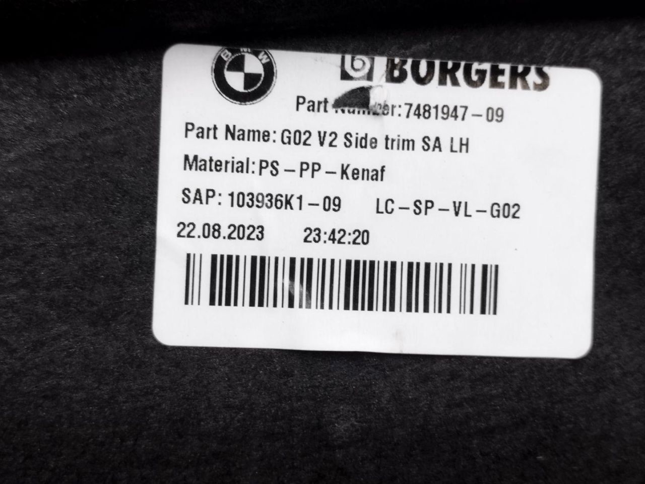 Обшивка отсека багажника левая BMW 2023